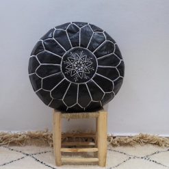 1- The Moroccan Black leather pouf is 100% Moroccan, precisely from Marrakesh, the city of Palms and sun. We make our pouf from sheep’s leather, manually fabricated in the old medina of Marrakesh. The poufs that we sell are high quality; they are made from one of the best leather that you can find in Morocco. This kind of pouf is also known as Ottoman poufs.