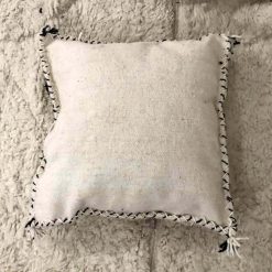 - Handmade with fabric woven by myself using natural fibers, combined with an organic linen fabric. I have incorporated handmade tassels and hand stitched elements to this cushion.